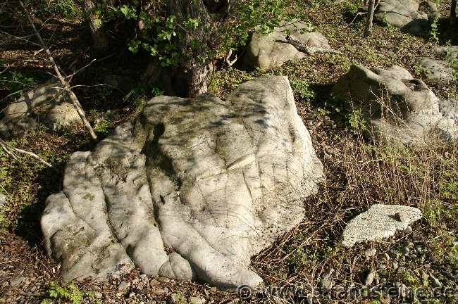 helle, weiße bis schmutzig beige, teils mürbe Sandsteine