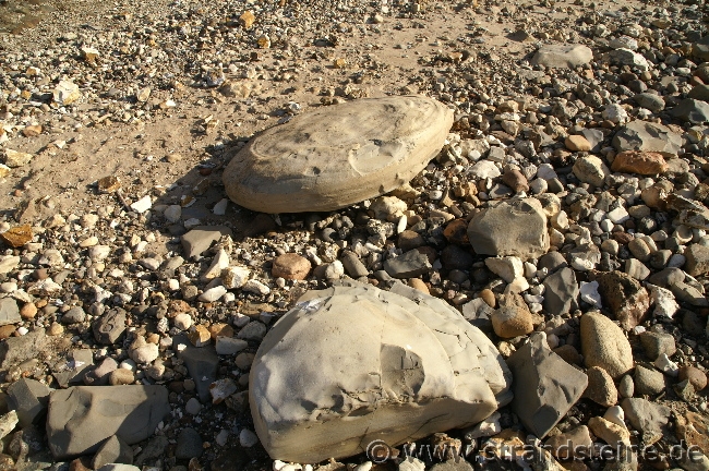 grauer Zementstein, dunkle Aschelagen, Kalkkonkretionen