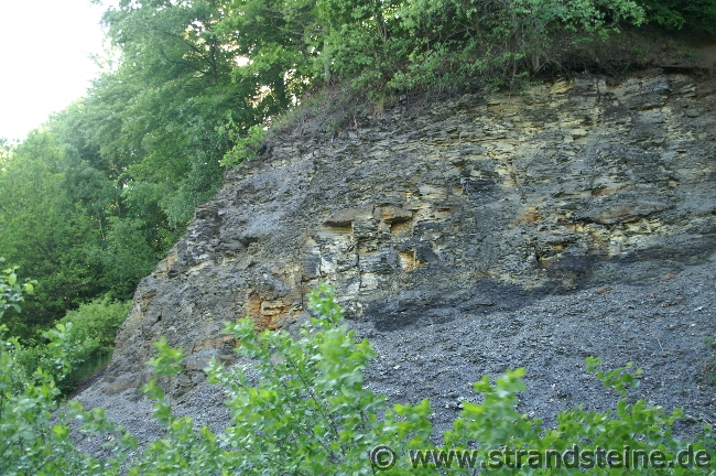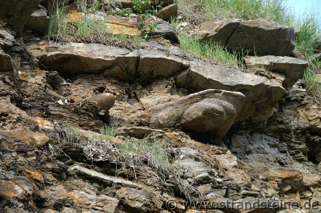 braune bis grauschwarze Stinkkalk-Konkretionen, eingebettet in