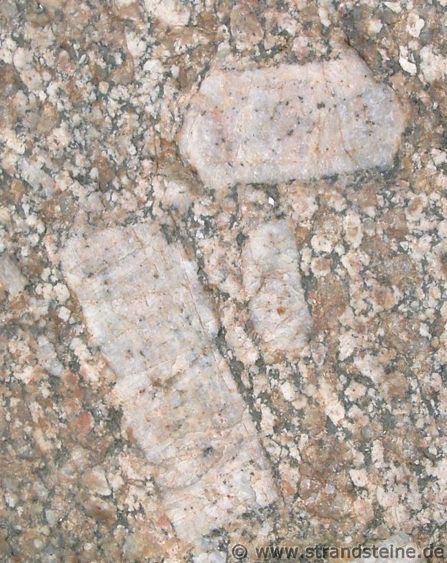 kommen vor. Bei der Bestimmung der Gesteine ist die Form der Kalifeldspäte