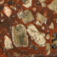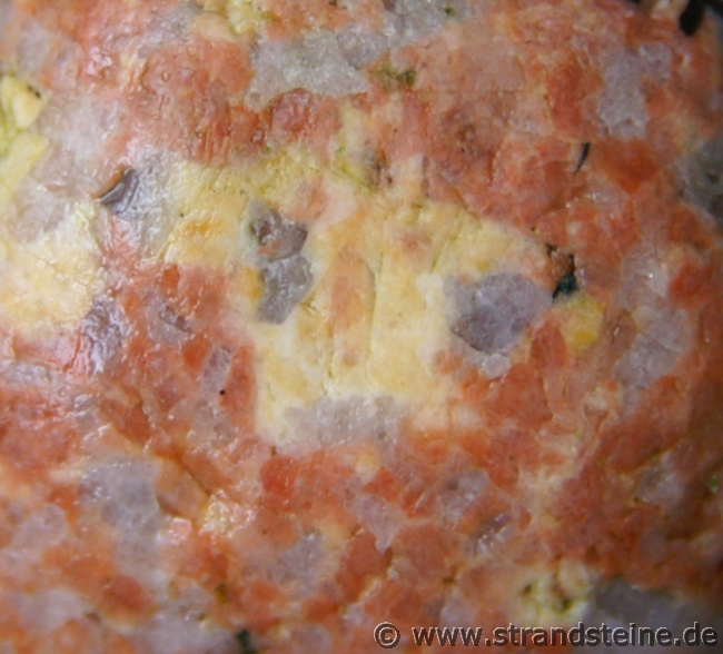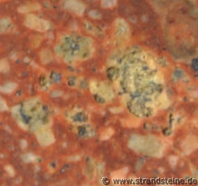 weiß und grün bis zu gelb. Tiefroter Plagioklas kommt vor, ist aber eher