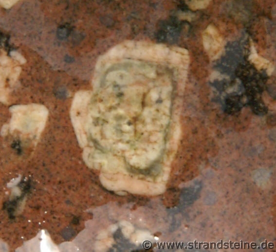 Bei manchen Plagioklasen ist das Innere des Kristalls anders gefärbt ist